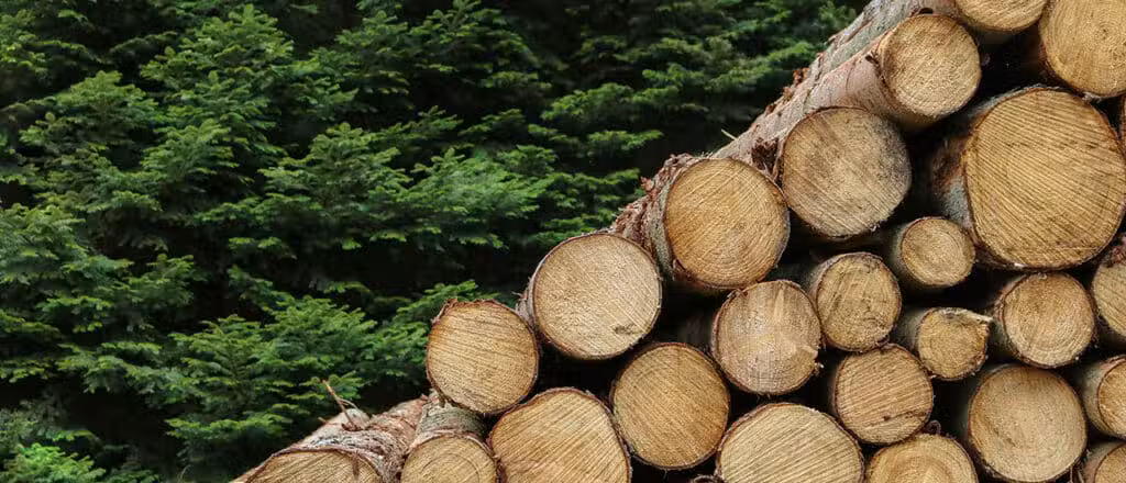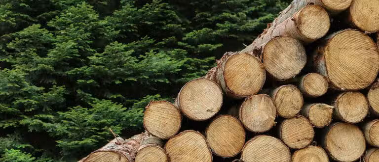 Stockar, trave, skog i bakgrund