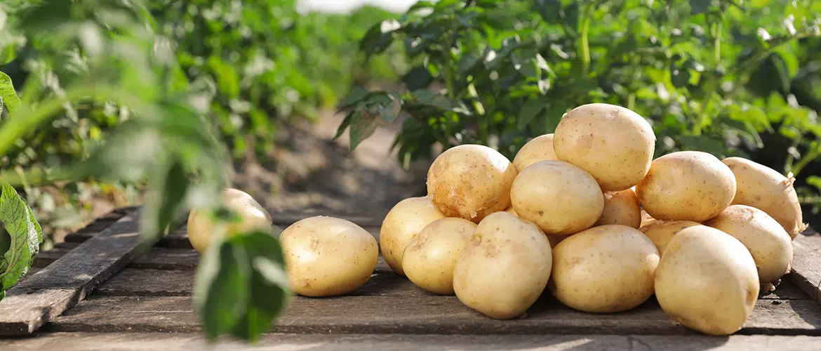Potatis på hög i landet